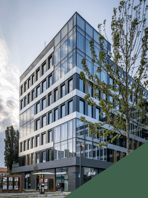 The office spaces at EINPARK are designed to meet the highest standards, with 16,000 m² of premium office area complemented by 1,800 m² of retail space on the ground floor. The building also offers substantial parking facilities, including 374 spaces with 9 charging stations in the basement and 2 fast-charging stations at ground level.